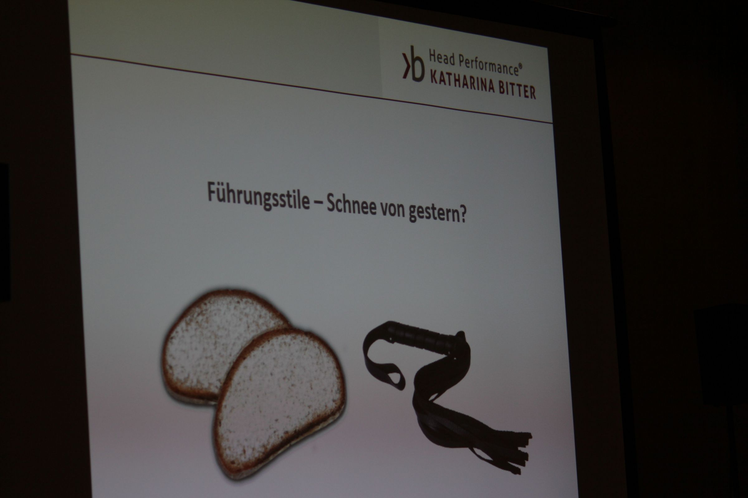 Im Anschluss kam die Germanistin und der zertifizierte Personalcoach Katharina Bitter auf die Bühne. Mit Ihrem Vortrag "Mit warmem Herzen und kühlem Kopf - ein Update für Führungskräfte“ analysierte Sie die gängigen Führungsstile und die historische Entwicklung. Kompliziert wird das Thema Führung, wenn man die Wertevorstellungen und Prioritäten von verschiedenen Generationen bzw. von Mann und Frau bedenkt, die deutlich voneinander abweichen können. Waren früher und vor allem bei älterenen Mitarbeiter Provisionen ein bewährtes Motivations-, und somit auch Führungsmittel, legen jüngere Mitarbeiter nun häufig mehr Wert auf kürzere Arbeitstage um Zeit mit der Familie zu verbringen.