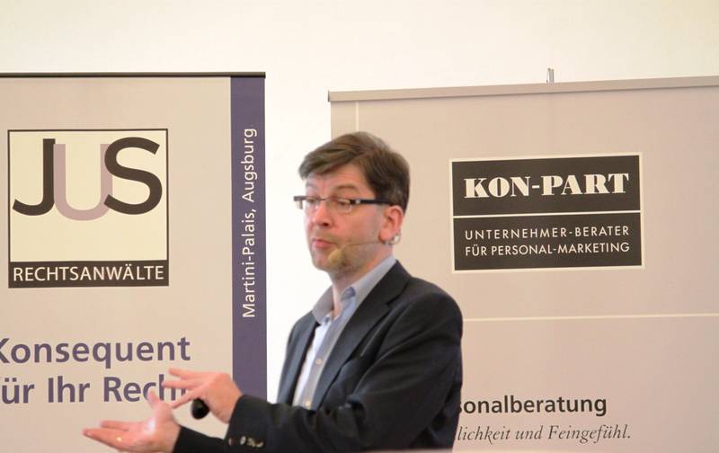 Im Anschluss startete Stefan Klaus, Fachanwalt und Mediator der Rechtsanwaltskanzlei JuS Rechtsanwälte Schloms und Partner mit dem Vortragsprogramm „ Viele Grüße aus Erfurt! Einige Entscheidungen des Bundesarbeitsgerichts aus 2013 – ausgewählt und aufbereitet für Ihre tägliche Personalarbeit. Die Teilnehmer erwartete ein informativer Vortrag zu aktuellen Neuerungen aus dem Bundesarbeitsgericht.